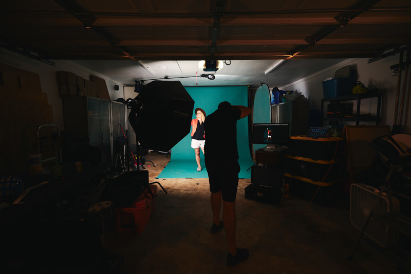 “Setting up a studio in our garage in the beginning of Florida’s summer isn’t the most ideal, as there are days when it gets really hot. However, we had to close the door to control the lighting so that made social distancing a bit challenging as well,” explains Alex. “We had bottles of hand sanitizer and disinfecting wipes for participants and for any gear/furniture that they touched, and we tried to work quickly to avoid anyone sweating in blazers and messing up their hair/makeup.”