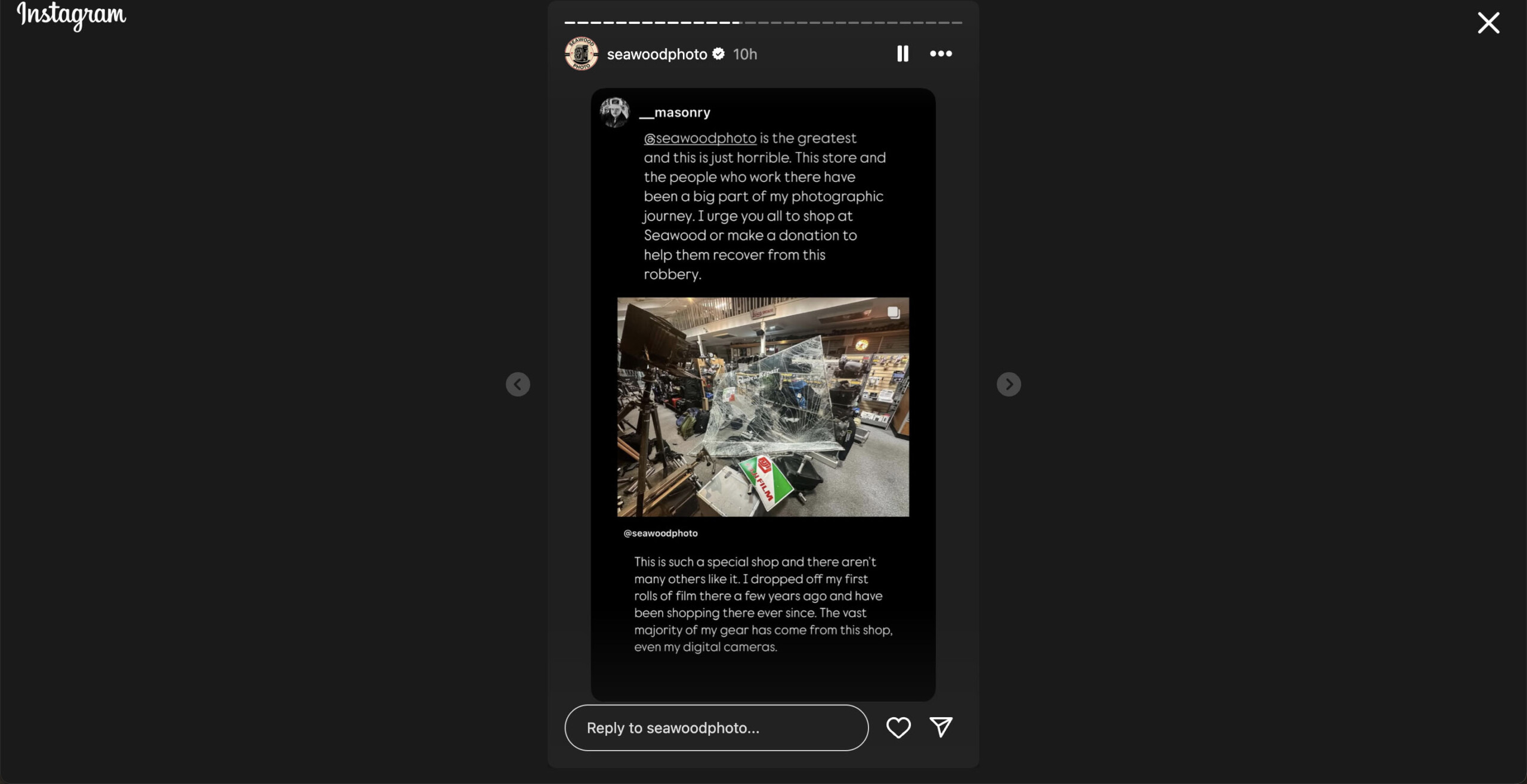 “While cleaning broken glass and cameras, neighbors, concerned citizens, and nearby high school students stopped by, asking what happened,” Seawood Photo writes.