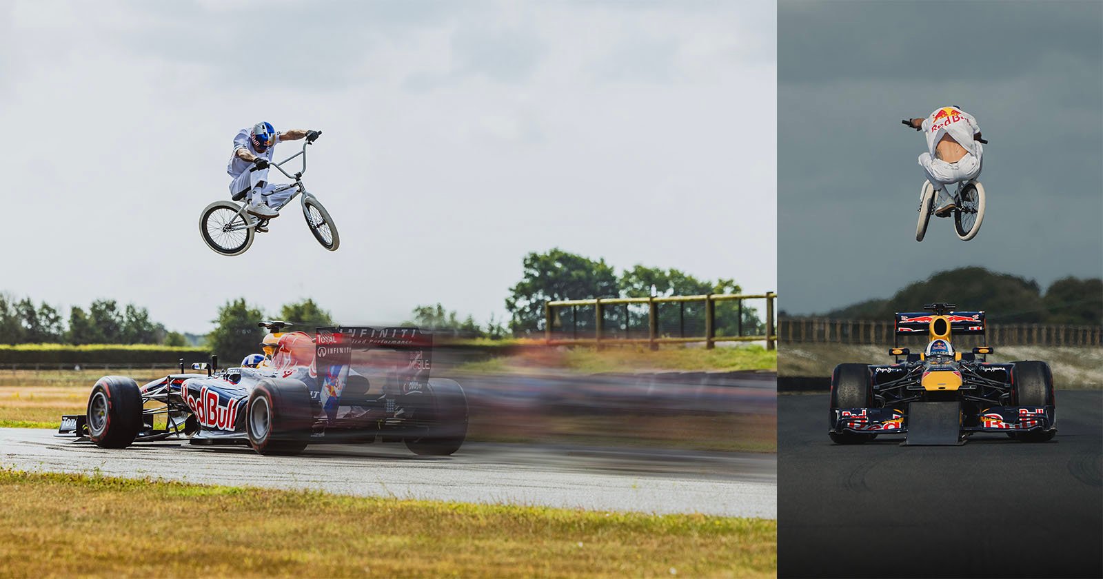 Hair-Raising Photos of a BMX Biker Jumping Over a Moving F1 Car