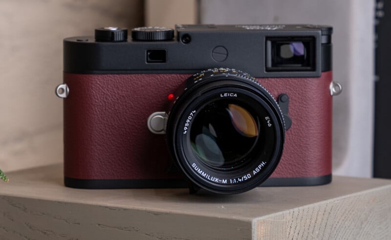 This camera is named after “The Atelier” commemoration in 1917, and is built on the strong foundation of a silver Leica M11-P digital rangefinder camera. The special edition camera features an exclusive boysenberry leatherette, very much unlike the standard M11-P.