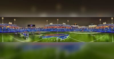 RIT Big Shot 37 at Highmark Stadium in Buffalo, New York, was the biggest light painting photo in the series yet, attracting approximately 6,500 Buffalo Bills fans to the historic stadium during its final season. The incredible 360° Big Shot was the result meticulous planning, two dozen Nikon Z9 cameras, and thousands of people armed with flashlights joining forces to bathe a massive football stadium in light.