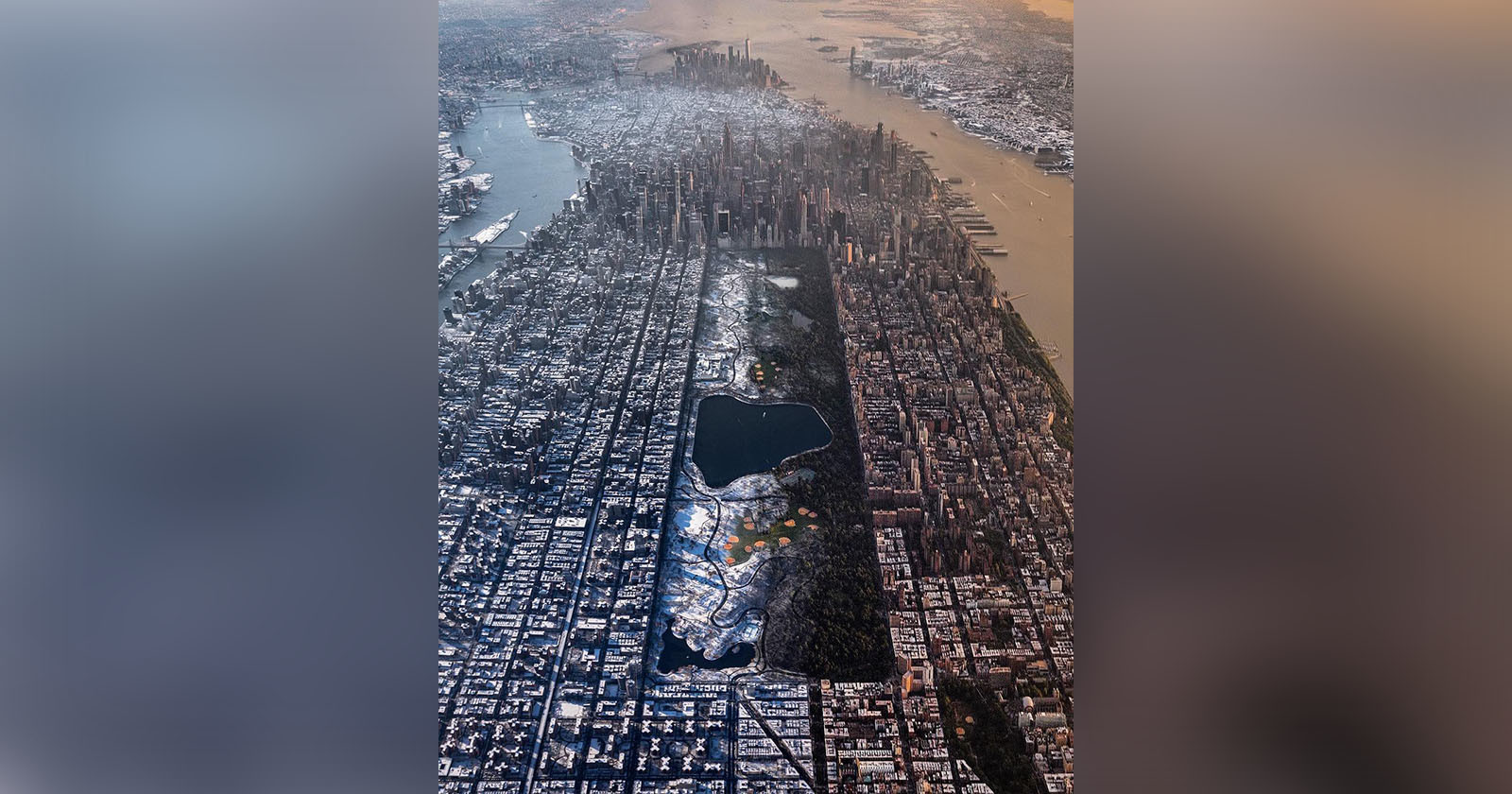 Check out this aerial photo of four lakes in an icy winter landscape. It's actually not what it seems. Photographer Josh Newcomb captured this photo of a frozen puddle from ground level in his own backyard.